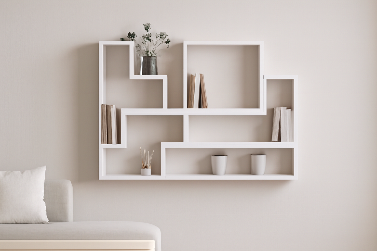 The wooden elements in the sets maintain uniform dimensions. The design enables each component to blend perfectly with the adjacent elements. The surface maintains its uniform brightness while producing a gentle visual effect in the room. The white color scheme creates a peaceful atmosphere which enables users to display their books and decorative items.