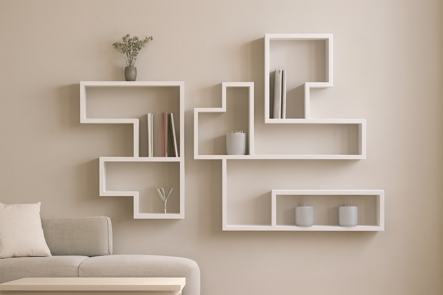 The shelves match perfectly with living rooms and bedrooms and workspaces and hallways. The light finish creates a clean environment which works with multiple furniture designs. The wall-mounted shelves produce a delicate border that draws attention to the displayed objects. The design works effectively with various interior design styles.